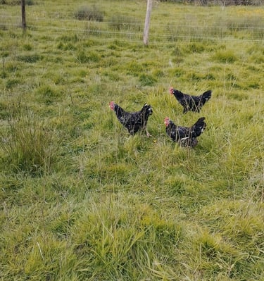 Nos poulets passent la majeure partie de leur temps à l'extérieur, profitant des bienfaits de la nature. Ils peuvent glaner des brins d'herbes, des graines et d'insectes.